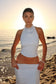 The CALANDRA Slinky Halter Top With Hardware is an effortless statement made for warm nights and golden hours. Designed with a fluid halter neckline and soft relaxed fit, this top features a sleek button closure and a gleaming hardware accent at the back for an unexpected edge. Fully lined for comfort, this top is made to move with you—subtle, striking, and always on your terms.