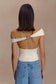 The CARLEY Off Shoulder Knit Top is a sleek knit essential redefined with directional detailing. Designed with an off-shoulder neckline and asymmetrical shape, it frames the décolletage with subtle drama. The fitted silhouette is balanced by a ribbed waist panel for structure, while the open back is finished with a hardware accent that adds a polished edge. Sleeveless and streamlined, this top is a modern staple for day-to-night styling.
