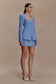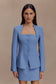 The CHRISTEL Suiting Fitted Blazer is a directional update to classic suiting. Designed with a straight neckline framed by bolero-style side panels, it redefines structure with a feminine edge. Princess seam lines sculpt the fitted silhouette, while internal shoulder pads and long sleeves sharpen the profile. A single-button cuff detail and button-front closure refine the look, all finished with a fully lined interior for polished comfort. Sleek and versatile, this blazer is cut to move effortlessly from desk to dinner.