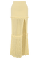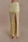The COLEENE Pointelle Knit Maxi Skirt brings soft femininity to a streamlined silhouette. Designed with a high-waisted, elasticated waistband, it offers a comfortable yet flattering fit that elongates the frame. Intricate pointelle knit detailing is finished with scalloped edges for a romantic touch, while the leg split adds movement and subtle allure. Unlined for a lightweight, breathable feel, this maxi-length skirt is an elevated knit essential — perfect for warm-weather styling or layered looks.