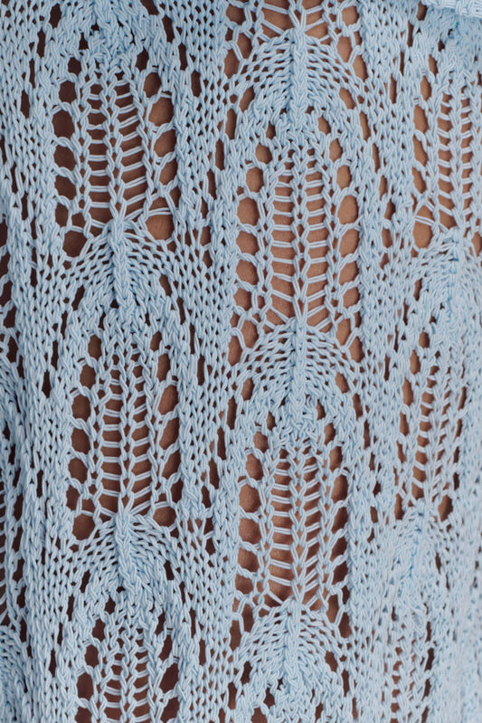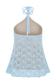 The COREY Crochet Halter Neck Top brings artisanal texture into a modern silhouette. Designed with an adjustable halter neckline, it frames the shoulders while maintaining a sleek, sleeveless profile. Crafted in intricate crochet knit fabrication and mesh lined for balanced coverage, the longline cut elongates the torso for a flattering finish. Considered yet effortless, this piece delivers statement texture with contemporary restraint.