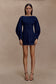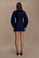 The COSMALA Denim Long Sleeve Mini Dress is a structured silhouette with feminine detailing. Designed with a boat neckline and barrel-shaped sleeves, it frames the upper body with a contemporary edge. Gathering under the bust and front-and-back princess seams sculpt the figure, while the mini length keeps the look playful. Finished with a back zip closure, this dress is a directional take on denim dressing—balancing polish with everyday ease.