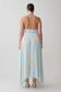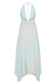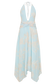 The CYRA Plunge Chiffon Midi Dress blends soft movement with sculpted detail. Designed with a deep V halter neckline that ties elegantly at the back, it frames the décolletage while revealing an open back. A twisted waist panel defines the silhouette, drawing the eye before falling into a softly flowing skirt. The handkerchief hemline adds fluid motion and dimension, finished in a long midi length for an effortlessly refined look. Fully lined and secured with a discreet side zip, this piece balances lightness with modern elegance.