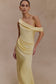 The DALIA Off-Shoulder Satin Maxi Dress is a statement of modern sophistication. Designed with an asymmetrical draped neckline, this sleeveless silhouette exudes effortless glamour. The fitted, boned bodice provides structure and support, while the gathered hip detail enhances the figure with soft, sculptural draping. Crafted in a fluid satin fabric and finished with an internal elastic waist stay for a secure fit, this maxi-length gown moves beautifully with every step. A discreet side zip and hook-and-eye closure ensure seamless wear, making this dress perfect for elegant soirées, black-tie events, or bridal celebrations.