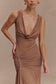 Cowl Neck Slinky Maxi Dress - Mocha Mousse