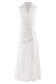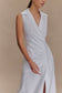The DANTE Ruched Linen Midi Dress blends structured tailoring with effortless drape. Featuring a sharp collar, sleeveless cut, and an asymmetric placket, this linen midi is defined by its wrap front silhouette, softly gathered at the side seam to sculpt the waist. Back darts enhance the shape, while an invisible side zip ensures a seamless fit. Light, breathable, and elevated, this dress is perfect for warm-weather getaways, coastal dinners, or city strolls with a refined twist.