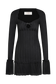 Pointelle Long Sleeve Mini Dress - Black