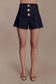 The DEMI High Waisted Denim Shorts deliver a polished take on a warm-weather staple. Designed with a high-rise waist and an A-line silhouette, they flatter the figure while offering effortless ease. A button-front fly with custom decorative buttons adds a refined point of interest, complemented by soft front pleats that enhance shape and movement. Finished with functional back pockets, these shorts balance structure and wearability — perfect for elevated everyday styling.