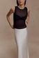 The DOLLIE Sheer Knit Tank Top is a versatile essential designed with a modern edge. Featuring a classic crew neckline and a sleeveless cut, it’s crafted from a sheer knit fabrication that offers a lightweight, breathable feel. Cut to a longline silhouette, this top layers effortlessly over bralettes, swimwear, or tailored bottoms—bringing understated elegance to both day and evening looks.