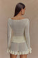 Add a touch of charm to your everyday life with the ELEANOR Knit Frill Cardigan, a playful piece with romantic detailing. Featuring a scoop neckline, delicate shell buttons, and ruffled hems at the sleeves and waist, this cardigan brings a feminine twist to classic knitwear. The non-functional front placket keeps the silhouette clean and polished, while the unlined finish offers lightweight comfort. Pair with the Eleanor Knit Frill Shorts for a co-ord that’s equal parts cosy and chic.