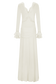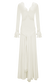The ELECTRA Slinky Lace Maxi Dress blends sultry detail with fluid design. Featuring a deep V lace neckline and fitted silhouette, this dress hugs the body while lace cut-outs add delicate intrigue. A cascading front-side tie drape brings graceful movement, while flared layered sleeves evoke a sense of vintage romance. Partially lined for contrast and comfort, this dress is designed to turn heads—whether it’s a moonlit dinner or a statement-making soirée.