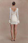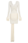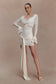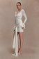 The ELECTRA Slinky Lace Mini Dress is designed to contour the body with fluid elegance and modern allure. Featuring a V lace neckline, it frames the décolletage with delicate contrast, while lace cut-out detailing adds a subtle, directional edge. The fitted silhouette is enhanced by a front side tie drape that creates movement and soft shaping through the waist. Long sleeves with flared, layered cuffs introduce romantic volume, balancing the sleek mini-length finish. Partially lined for comfort and coverage, this dress is made for after-dark moments that call for confident femininity.