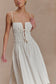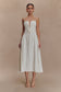 The ELIAS Shirred Cotton Midi Dress is a playful take on feminine summer styling. Crafted with a fully shirred bodice that sculpts and supports, this midi dress is detailed with delicate adjustable straps and contrast-beaded front ties for a touch of artisanal charm. An invisible side zip ensures a seamless fit, while the softly flared skirt offers ease and movement for warm-weather days. Fully lined for comfort, this dress brings effortless appeal to sun-drenched escapes and everyday elegance.