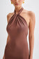 The ELYNA Slinky Halter Maxi Dress is the epitome of elegance and allure. Its halter neckline and ruched centre front exude sophistication, while the low back adds a touch of sultry charm. With ruched centre back detail, this dress offers a flattering silhouette from every angle. Designed to hug your curves, its bodycon fit accentuates your figure effortlessly. Perfect for any special occasion, the maxi length adds drama and elegance to your ensemble. Embrace timeless style and undeniable allure in the Elyna Maxi Dress, because true elegance never goes out of fashion.