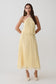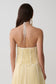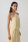 The GEORGIA Panelled Halter Sleeveless Top blends soft detail with a sculpted, modern silhouette. Designed with a halter neckline and contrast tie, it frames the shoulders while adding a refined point of interest. Panelled seams through the front and back create subtle shaping, complemented by piped detailing that enhances the clean lines. A scalloped hem softens the finish, while a side button closure ensures a seamless fit. Fully lined, this top delivers a polished look with thoughtful, feminine details.