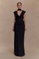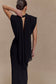 The GIULIA Chiffon Draped Maxi Dress is a breathtaking display of fluidity and grace. Designed with a deep cowl neckline at both the front and back, this silhouette drapes effortlessly for a touch of timeless allure. The fitted waist creates a flattering shape, while the gathered overlay detail at the hip adds soft dimension. A flowing hip sash enhances movement, complementing the airy chiffon fabrication. Sleeveless and maxi in length, this dress is the perfect choice for elegant soirées, formal occasions, or modern bridal moments.