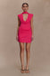 The GIULIA Chiffon Draped Mini Dress is the definition of light allure. Crafted in airy chiffon, it features a dramatic cowl neckline that drapes both front and back for effortless elegance. The fitted waist and gathered overlay at the hip flatter your figure, while the asymmetric sash detail adds graceful movement. Designed to turn heads from every angle, this dress brings soft drama to sunset cocktails, soirées, and beyond.