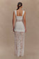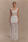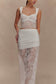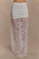 The GUINEVERE Lace and Mesh Maxi Skirt brings a delicate balance of texture and movement to your occasionwear wardrobe. Designed with a high waisted fit, this maxi skirt features a sheer mesh overlay with a lace underskirt, creating soft contrast and visual depth. The fitted waist flatters, while the relaxed hem adds graceful flow. With a slip-on design and partially lined finish, it offers ease without compromising on drama.
