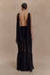 The HAILLE Knit Chiffon Maxi Dress blends contemporary texture with romantic fluidity. A ribbed knit bodice creates a sculpted silhouette, balanced by side waist cutouts and an airy open back. The boat neckline is accented with a chiffon shoulder scarf that drapes effortlessly, adding softness to the structure. Finished with a tiered chiffon skirt that flows with every step, this dress is made for movement—from daylight affairs to twilight celebrations.