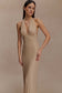 Halter Neck Diamante Maxi Dress - Sandy Gold