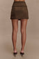 Faux Suede Belted Mini Skirt - Chocolate