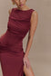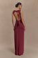 The HENLEY Slinky Drape Maxi Dress is a masterclass in understated glamour. Featuring a refined boat neckline, this bodycon silhouette drapes effortlessly across the bust and waist, creating a fluid, sculptural effect. The open-back design, secured with a delicate button closure at the top, adds a touch of allure, while a draped tie cascades elegantly from the right shoulder for a striking finish. Unlined for a lightweight, slinky feel, this dress is the perfect choice for evening sophistication, black-tie affairs, or modern bridal moments.
