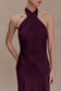 Gathered Slinky Halter Maxi Dress - Mahogany