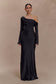 The IRIS Long Sleeve Satin Maxi Dress is a statement of refined elegance. Designed with an asymmetrical neckline and a gathered bust overlay, this silhouette drapes beautifully while enhancing the figure. The fitted, boned bodice provides structure and support, while the gathered hip detail adds soft dimension. A flowing maxi-length skirt completes the look with effortless grace. Finished with an internal elastic waist stay for a secure fit and a back zip with hook-and-eye closure, the Iris dress is perfect for formal occasions, black-tie events, and unforgettable moments.