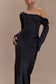 Long Sleeve Satin Maxi Dress - Black