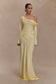 The IRIS Long Sleeve Satin Maxi Dress is a statement of refined elegance. Designed with an asymmetrical neckline and a gathered bust overlay, this silhouette drapes beautifully while enhancing the figure. The fitted, boned bodice provides structure and support, while the gathered hip detail adds soft dimension. A flowing maxi-length skirt completes the look with effortless grace. Finished with an internal elastic waist stay for a secure fit and a back zip with hook-and-eye closure, the Iris dress is perfect for formal occasions, black-tie events, and unforgettable moments.