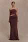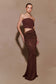 The JASIEL Strapless Knit Maxi Dress is designed to flatter with effortless ease. Featuring a fitted strapless bodice and a contrast knit skirt, this unlined maxi dress is elevated by an asymmetrical waistline and gathered hip detailing that enhances the body’s natural curves. The fishtail hem adds graceful movement, making this piece perfect for warm evenings, coastal escapes, or elevated everyday dressing with a refined twist.