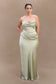 The JASMINE Strapless Satin Maxi Dress is the epitome of refined glamour. Designed with a softly gathered bust overlay, this strapless silhouette creates a romantic yet sculpted effect. The boned bodice provides structure and support, while the gathered hip detail enhances the figure with elegant draping. A maxi-length skirt flows effortlessly, ensuring graceful movement with every step. Featuring an internal elastic waist stay for a secure fit and a discreet side zip with a hook-and-eye closure, this dress is perfect for formal occasions, evening events, and modern bridal moments.