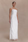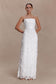 The JOSEFA Lace Maxi Dress pairs intricate detailing with a clean, sculptural silhouette. Crafted from a sequin-embellished floral cut-out fabric, it brings soft dimension and restrained shimmer to an otherwise minimal design. A straight neckline and adjustable thin straps offer a refined, customisable fit, while the column silhouette elongates the body. Fully lined for comfort and coverage, this maxi-length dress is finished with a centre-back zip and split for ease of movement — polished, composed, and designed for moments that linger.