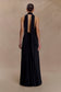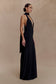 The JULIET Slinky Maxi Dress With Scarf is designed for fluid movement and versatile allure. Featuring a deep V plunge neckline and a fitted bodice, this silhouette skims the figure without the need for a zipper, ensuring a smooth, pull-on fit. The attached neck tie detail can be styled several ways, while the low back and gathered back detailing add a hint of drama. Fully lined for comfort, this dress is finished with a back neckline tie that completes its refined, adaptable design.