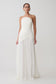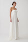 The JUNO Strapless Pleated Maxi Gown is a vision of effortless sophistication. Designed with a soft rounded front neckline and a fitted bodice, this gown sculpts the silhouette with modern elegance. The asymmetrical bodice hemline adds a dynamic edge, flowing seamlessly into the plissé underdress for texture and movement. Featuring built-in bust cups for support, a back zip with hook-and-eye closure for a flawless fit, and a maxi-length skirt with a delicate micro train, this gown is perfect for grand entrances, black-tie events, and unforgettable moments.