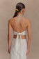 The KENSLEY Broderie Halter Top is a feminine essential crafted for warm-weather days and effortless elegance. Featuring a halter neckline with delicate rouleau ties and a scalloped edge, this top combines intricate broderie with a soft, structured silhouette. A shirred back panel ensures a comfortable, flexible fit, while the lined bodice adds coverage and ease. Pair with the Kensley Broderie Midi Skirt for a romantic, coordinated set perfect for garden parties, long lunches, and sunlit getaways.