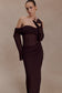 Off Shoulder Chiffon Maxi Dress - Cacao Brown