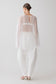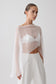 The KIRSTINE Bralette With Chiffon Overlay plays with texture and transparency for a quietly striking finish. Designed with a smooth satin bralette base, it features adjustable straps, a classic bra-style closure, and a fully lined construction for comfort and support. A lightweight chiffon overlay drapes asymmetrically across the body, creating soft movement and a directional neckline. Finished with a centre-back opening and dual button closure, this piece balances structure with fluidity — refined, modern, and designed for moments that feel effortlessly elevated.