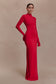 The KIYAH Slinky Cut Out Maxi Dress is a sleek, form-defining silhouette with directional detailing. Featuring a high neckline and long sleeves, it’s balanced by an open low-back cut-out with statement hardware for a touch of edge. Gathered shoulder accents create soft volume, while the fitted bodycon shape elongates the frame. Fully lined for a smooth finish and cut to a maxi length, this dress is the perfect fusion of sophistication and seduction.