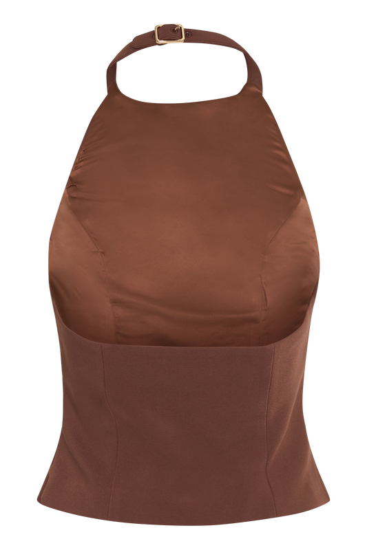 The LETITIA Suiting Mini Skirt with Buckle is a fashionable and versatile piece for any wardrobe. Featuring a mid-rise and mini length, this skirt offers a sleek and modern silhouette. The side zip ensures a seamless fit, while the double belt with buckle detail at the waist adds a unique and stylish touch. Fully lined for comfort, this skirt pairs perfectly with the Letitia Suiting Halter Top with Buckle, creating a chic and coordinated ensemble.