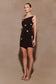 The LIVA Strapless Diamante Floral Trim Mini Dress is a statement piece that fuses playful charm with refined detailing. Designed with an asymmetric strapless neckline, it frames the shoulders beautifully while creating a clean, modern shape. Beaded floral trims cascade along the front, catching the light for subtle sparkle. Fully lined and finished with an invisible zip for a smooth fit, this dress falls to a mini length — perfect for evening occasions that call for effortless glamour.