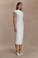 The LORENA Cotton Midi Dress is designed to flatter with its asymmetric high neckline and soft cap sleeves. Waist ruching adds subtle shaping through the bodice, while a centre back split allows for ease of movement in the clean midi-length silhouette. Fully lined for comfort and completed with an invisible centre back zip, this dress delivers understated sophistication—perfect for day-to-evening occasions.