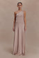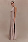 Asymmetrical Satin Maxi Dress - Bronze Taupe