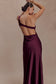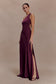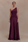 The LYLA Asymmetrical Satin Maxi Dress is designed to command attention through line and movement. Featuring a sculptural asymmetrical neckline with a single shoulder strap, it frames the body with directional elegance. Low hip seam detailing enhances the silhouette, while a gathered back waist panel adds softness and dimension. The open back is finished with an asymmetric strap for a striking contrast, balanced by a sleek, fully lined satin body. Secured with an invisible side seam zipper, this maxi-length design delivers fluid polish with confident precision.