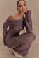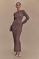 One Shoulder Fluffy Knit Midi Dress - Pecan