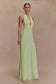 The MALAKHAI Chiffon Halter Maxi Dress is your go-to for effortless glamour, from sunlit lunches to evening soirees. Featuring a deep V halter neckline with subtle front gathering and a structured wire insert to hold its shape, this silhouette flatters with a bodycon fit through the bodice and a soft A-line flare at the hips. A side seam invisible zipper keeps the finish clean, while the sleek hardware neck closure adds a refined edge. Fully lined and designed without padding for a natural, easy fit, this dress is made to move with you from day to night.