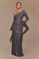 Diamante Long Sleeve Maxi Dress - Gunmetal