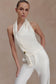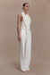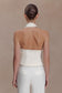 The MARINA Halter Top With Hardware offers a fresh take on evening minimalism. Designed with an asymmetric halter neckline that wraps and secures at the front waist, it’s finished with a gold trim accent that draws the eye and shapes the silhouette. Fully lined for a smooth, refined feel, this full-length top is completed with an invisible zip for a clean, uninterrupted finish. Modern, structured, and effortlessly striking, this top brings elevated simplicity to any look.