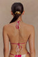 The MARQUISE Bikini Top is your go-to for sun-drenched days and poolside lounging. Designed in a classic triangle silhouette, it features ruched cups with adjustable halter neck and back ties for a custom fit. Fully lined for comfort and support, this bikini top pairs bold print with timeless shape—perfect for styling for your own signature swim look.