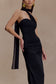 Slinky And Mesh Maxi Dress With Scarf - Black
